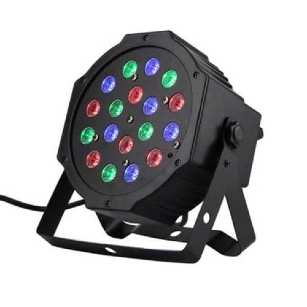 The 18-LED Red & Green & Blue Light Voice Control Parcan Projector Lamp with Remote Controller is built with eighteen 2W high power RGB LEDs, including six in red, six in green, and rest in blue. It